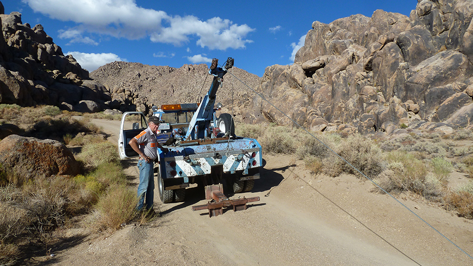 Wir fuhren John nach Lone Pine zur Garage hinterher, machten dort mit Druckluft die Gasklappe wieder gängig (da hatte sich reichlich Sand