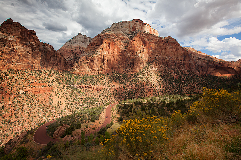 Da man in den Zion Canyon nur mit Shuttle-Bussen fahren kann, bogen wir nach rechts ab, auf den Zion-Mount Carmel Highway. Die Straße