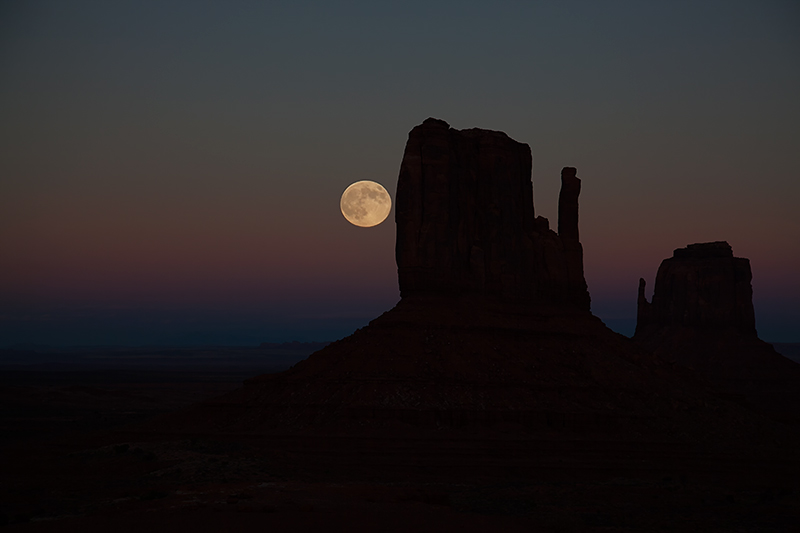 Kamera und Stativ losgezogen war, um den Mondaufgang neben dem Monument auf die Speicherkarte zu bannen.