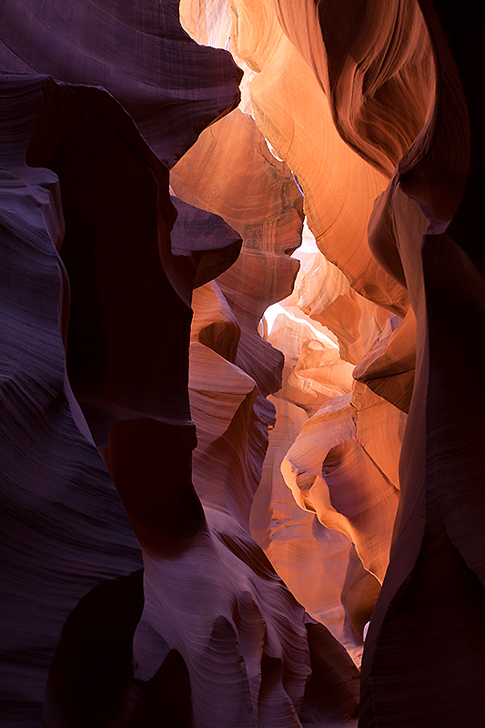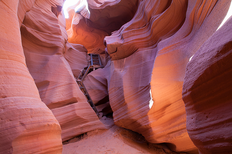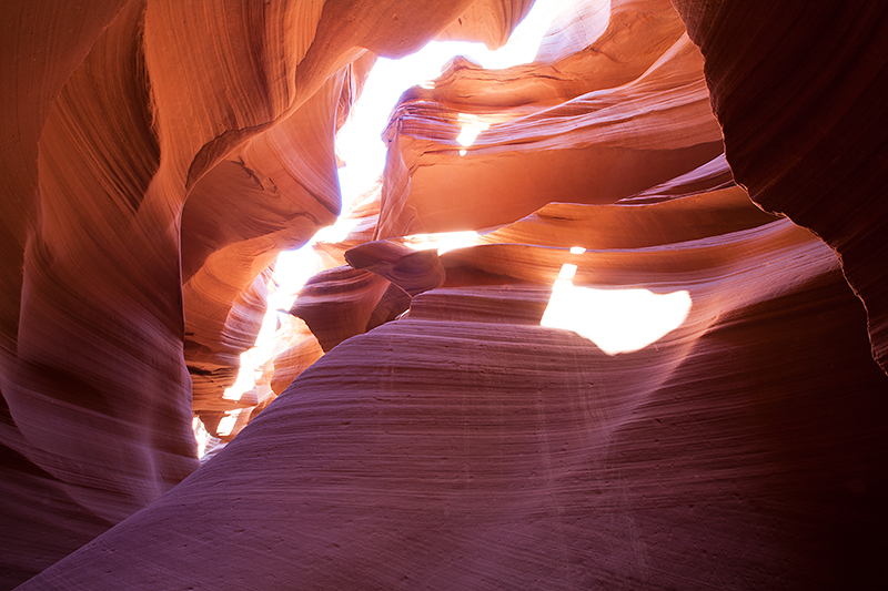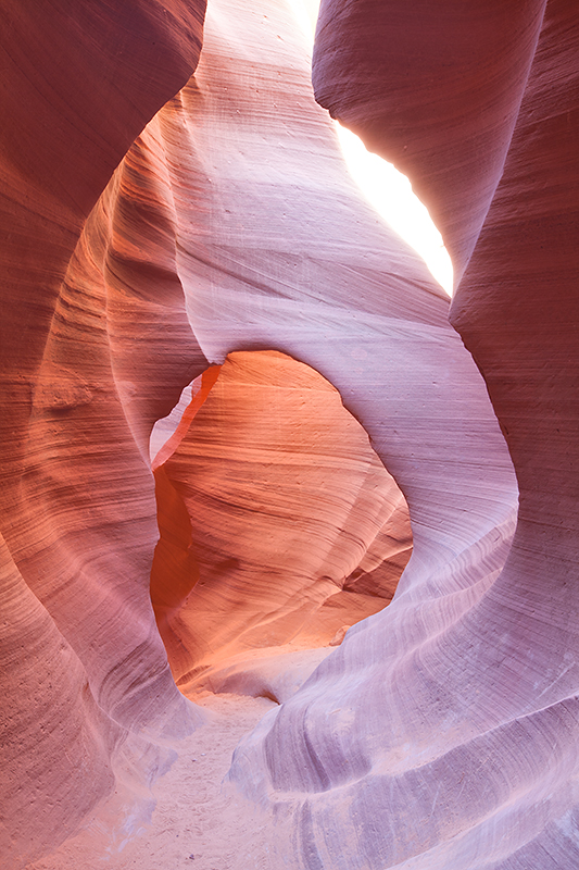 Ich konnte mich im Lower Antelope Canyon mit dem Fotografen-Paß statt der einstündigen geführten Tour, zwei Stunden völlig autark im