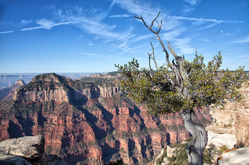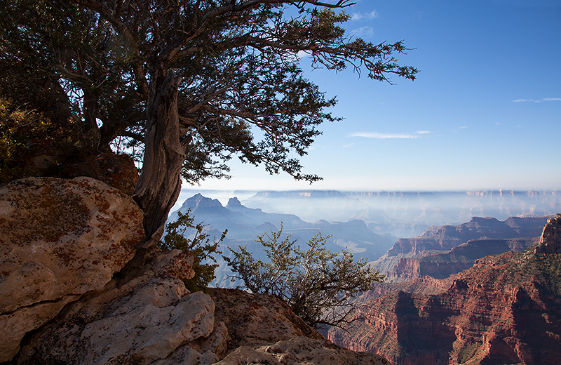 Am Bright Angel Point genossen wir eine ganze Weile nur für uns die herrliche Aussicht und die Stille, die einzig von einem fleißig