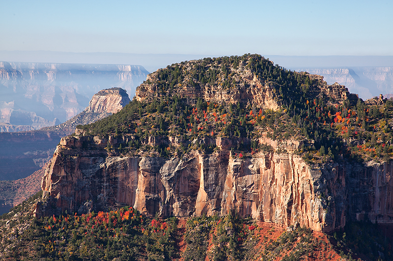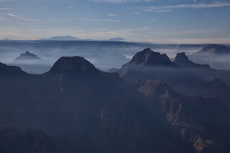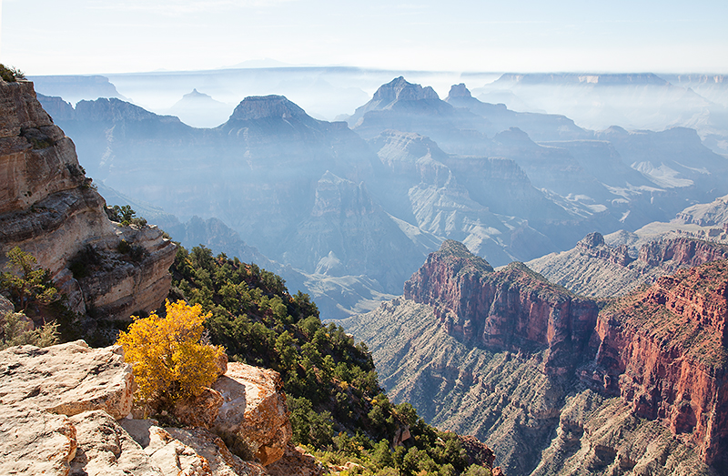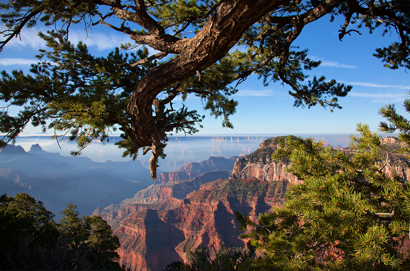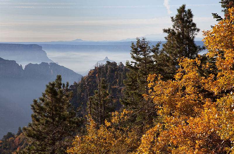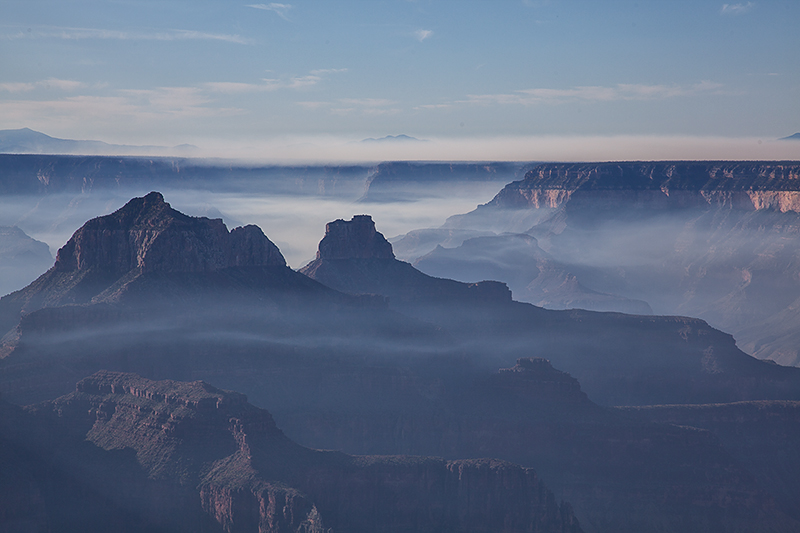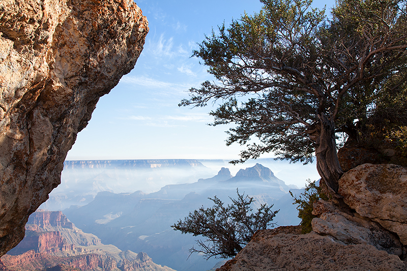 den Grand Canyon, der sich und die Gipfel der umgebenden Bergkuppen aber teilweise noch in dichte Nebelschwaden hüllte!