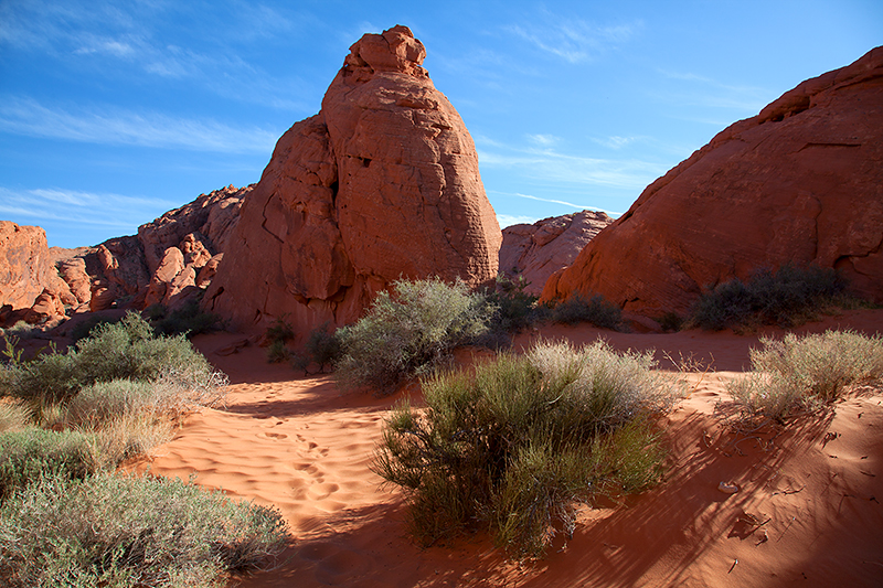 Das Valley of Fire leitet seinen Namen von den wirklich feuerroten Sandsteinformationen ab, die sich vor 150 Millionen Jahren aus großen